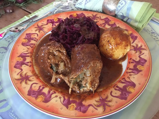 Veggie-Rouladen mit Rotkraut, Kartoffelkloß und mega-leckere Bratensoße